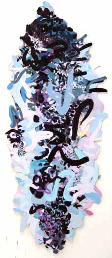 Acrylic on canvas with vinyl, 24 x 14”, 61 x 35.5 cm.