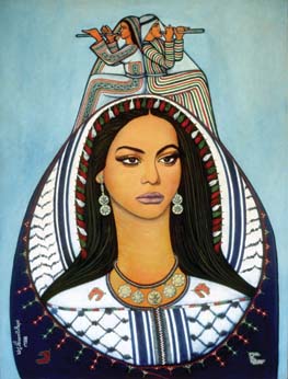 25. Sliman Mansour, "U.N. Relief," 1984. Oil on canvas, 80 x 60 cm.