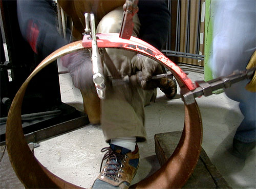 Sand cast glass with copper tubes and metal rods sticking out of sand cast glass.